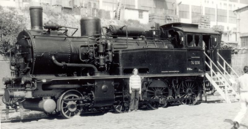 "2553 Erfurt" sein. Spätere DR-Nummer war 38 2267. Sie ist 1972 als letzte P8 der DR aus dem Dienst ausgeschieden. Ich bin mir aus heutiger Sicht nicht sicher, ob es im Sommer 1976 das richtige Schild an der richtigen Lok ist. Die "Echte" soll angeblich von ihrem Ausscheiden 1972 bis 1991 auf einem Denkmalsockel gestanden haben. |