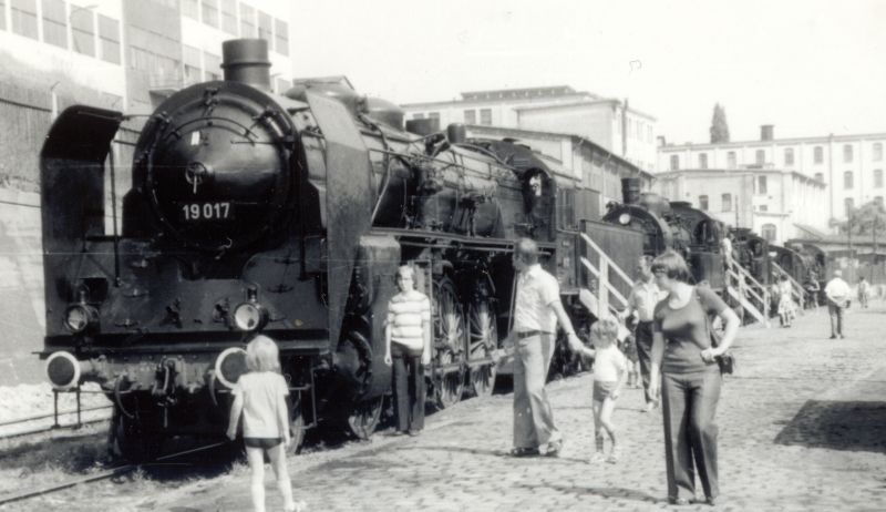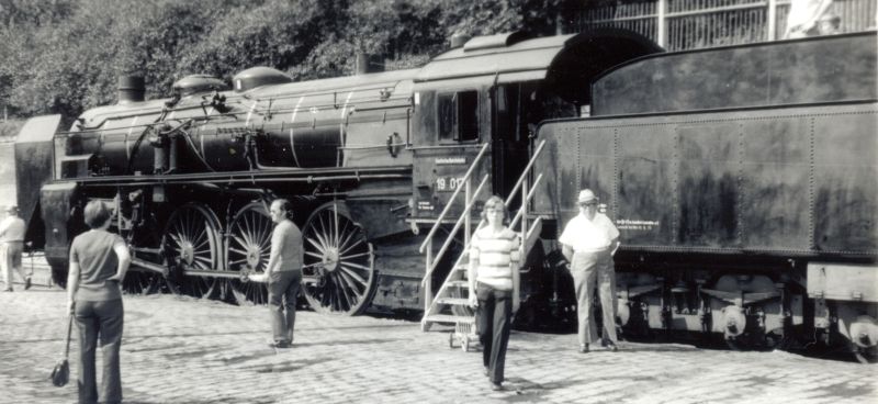 Vom 04.07.1976 stammen die ersten "Fotodokumente" die mich mit der Eisenbahn in Verbindung bringen. Aus Anlass des 100-jährigen Bestehens der Weimar-Geraer-Eisenbahn fand unter anderem ziemlich in der Mitte der Strecke, im Jenaer Westbahnhof eine Lokomotivausstellung statt. Mein Vater und ich mussten uns nicht lange überreden, also den Fotoapparat gegriffen und das sonnige Sommerwetter ausgenutzt, auf zum Westbahnhof. Die folgenden Bilder stammen alle von meinem Vater. Mein Anteil bestand darin, dass ich auf dem einen oder anderen Bild wichtige Teile der Dampfloks verdecke oder halt im Bild herum latsche. Da mein Reisegewicht aber vor mehr als 30 Jahren bei weitem noch nicht dem heutigen nahe kam, ist das mit dem Verdecken noch nicht ganz so schlimm. Ich habe übrigens nicht den Negativfilm sondern die Papierabzüge eingescannt und beschränke mich hier auf die relevanten Bildausschnitte, deshalb auch die etwas ungewöhnlichen Formate.