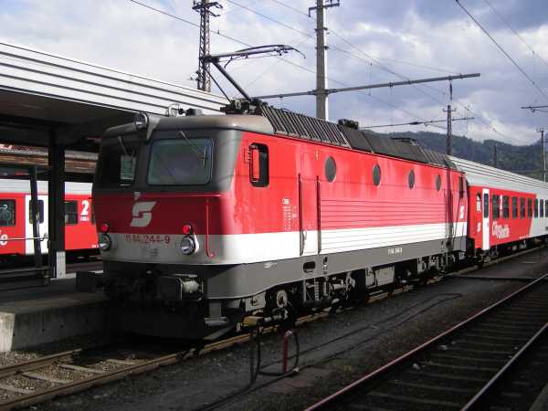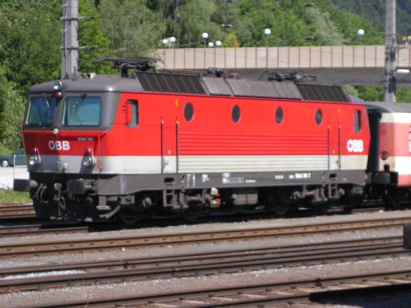 1144 244 Innsbruck Hbf 14.05.2007 Auch hier haben wir es mit einer Umrüstversion zu tun. Es ist eine ehemalige 1044.2, natürlich mit Wendezugsteuerung. Sie hat ebenfalls einen Regionalzug am Haken. |