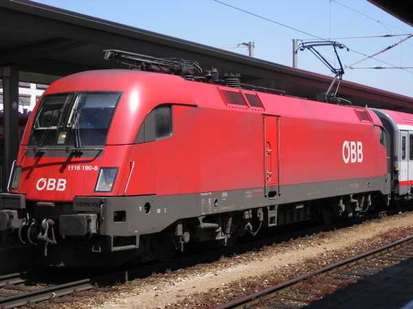 1116 190 München Ostbahnhof 21.05.2007 Auch dies ist ein Taurus, diesmal aber in der Zweisystemversion. Hier durchquert die Lok mit einem Eurocity den Münchner Ostbahnhof auf dem Weg zum Hauptbahnhof. |
