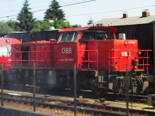 2070 063 Linz Hbf 22.07.2015 Hier sehen wir aus voller Fahrt aufgenommen eine der 90 Maschinen dieser Baureihe, die zwischen 2000 und 2004 von Vossloh (ex MaK) an die ÖBB geliefert worden sind. Die Hersteller-Typbezeichnung dieser Lokomotiven lautet G800 BB. Im deutschen Fahrzeugeinstellungsregister wurde dafür die Baureihennummer (1)278 vergeben. |