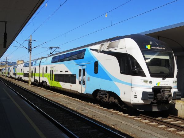 4010 101 Westbahn Linz Hbf 22.07.2015 Die Westbahn (WESTbahn Management GmbH) setzt auf der Linie von Wien nach Salzburg (auch über Linz) derzeit 7 dieser 6-teiligen Doppelstock-Triebzüge ein. Diese Stadler-Züge sind 150 Meter lang und basieren konstruktiv auf den Triebzügen RABe 511 für die S-Bahn Zürich. |