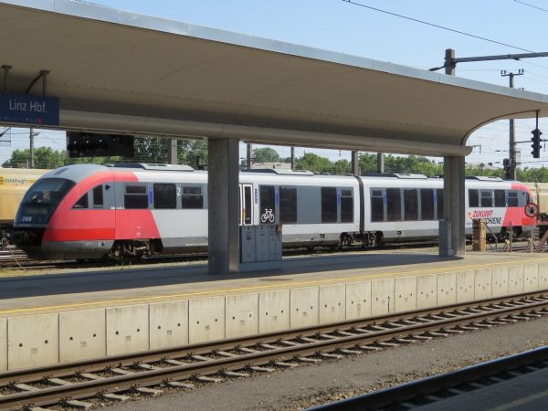 5022 006 Linz Hbf 22.07.2015 Diese Baureihe entspricht weitgehend der Baureihe 642 der DB AG. Zwischen 2003 und 2008 lieferte Siemens an die ÖBB 60 Einheiten. |