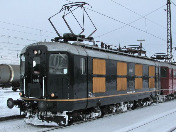 10008 Großkorbetha 28.12.2010 Sie zieht mit ihrer Schwestermaschine 10019 einen langen Sonderzug mit weit hörbar betrunkenen Passagieren in Richtung Süden. |