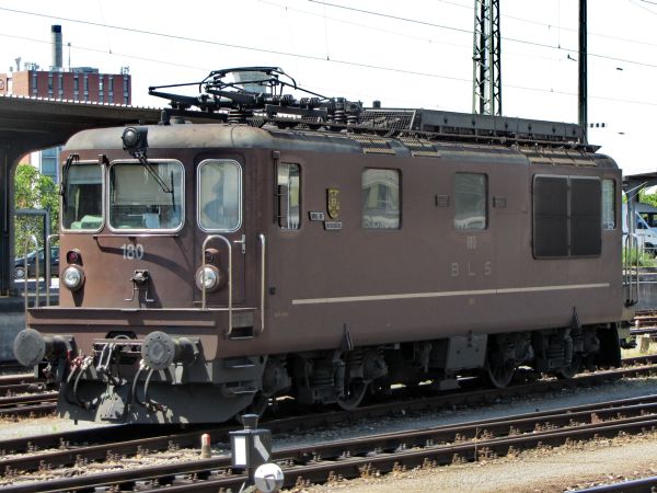 BLS 180 VILLE DE NEUCHATEL Basel Badischer Bahnhof 02.06.2012 Hier sehen wir eine der ab 1972 an Privatbahnen der BLS Gruppe (Bern-Neuenburg-Bahn) ausgelieferten Serienmaschinen. Ihre Auslieferung erfolgte parallel zu den Maschinen der Serie Re 4/4 II. |