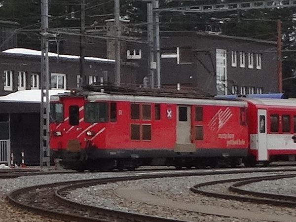 MGB 51 DISENTIS / MUSTER Andermatt 02.04.2016 Hier sehen wir auf Grund der Entfernung bei der Vorbeifahrt leicht verschwommen einen Gepäcktriebwagen der MGB. Die Fahrzeuge wurden im Jahr 1972 beschafft und sollten hauptsächlich den Wintersportverkehr auf der Schöllenenbahn verbessern. Sie können aber freizügig auf dem gesamten Netz eingesetzt werden. |