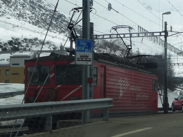 MGB 81 WALLIS Bahnverlad Realp 02.04.2016 Sie sieht schon ein wenig anders aus als die gleichnamige Baureihe der RhB, wurde sie doch von der Furka-Oberalp-Bahn (FO) bereits 1979 beschafft. Beim Rechtsnachfolger der FO, der Matterhorn-Gotthard-Bahn (MGB), ist sie auch weiterhin mit ihrer Schwesterlok für die Beförderung der Autozüge durch den Furka-Basistunnel verantwortlich. Als einzige Streckenlokomotive der MGB hat sie keinen Zahnstangenantrieb. |