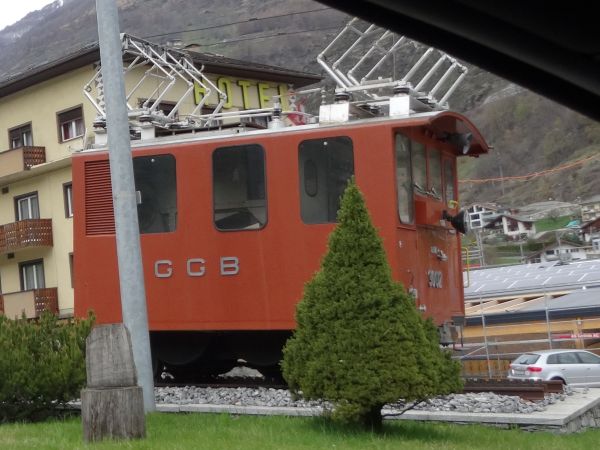 GGB 3002 Stalden-Saas 07.04.2016 Die Nummer 3002 wurde bei der Gornergratbahn im Jahr 2007 ausgemustert und befindet sich seit dem inmitten einer Verkehrsinsel in Stalden als Museumsstück. |