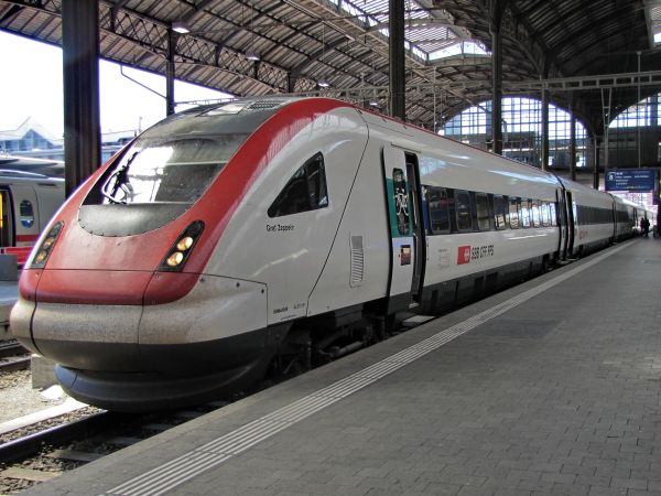 500 040 GRAF ZEPPELIN Basel SBB 02.06.2012 Dieser Intercity-Neigezug wartet hier auf seine Abfahrt über Bellinzona nach Lugano. Zwischen 1999 und 2005 wurden 44 dieser als ICN bezeichneten Züge von der SBB beschafft. Als einzigen nichtschweizerischen Bahnhof erreicht diese Baureihe den Bahnhof Konstanz. |