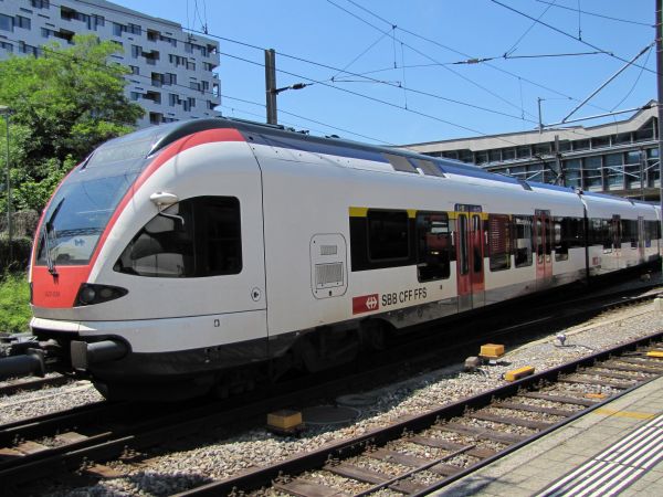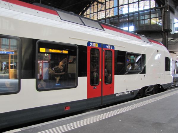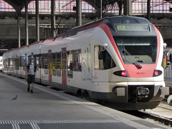 521 001 Basel SBB 02.06.2012 Mit diesem 4-Teiler im S-Bahn-Einsatz kehrte ich nach einem kleinen Stadtrundgang vom Badischen Bahnhof nach Basel SBB zurück. Wir sehen die Zweisystemvariante für die Schweiz und Deutschland. |