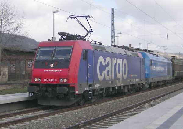 Re 482 040 Jena Saalbahnhof 10.03.2007 Diese SBB-Baureihe gehört zur gleichen Lok-Familie wie die DB-Baureihen 152.2 und 185.2-4. Sie wurden im Jahr 2006 an SBB Cargo ausgeliefert. |