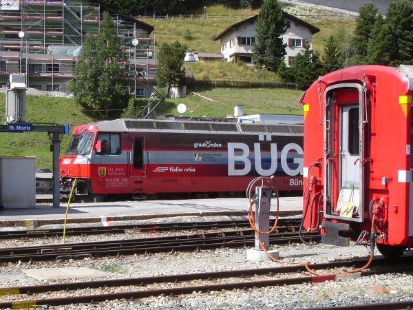 SURSELVA St. Moritz 11.08.2009 Sie versieht ihren Dienst nun schon seit dem 24.04.1953. Die 10 Maschinen der ersten Generation wurden seit 1947 ausgeliefert und erhielten zwischen 1985 und 1992 eine umfassende Modernisierung inklusive moderner Vielfachsteuerung, Türschließung, Neuverkabelung und Erhöhung der Heizleistung. |
