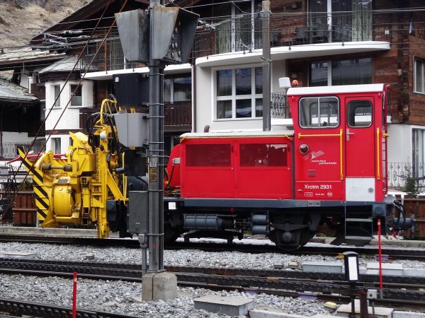 Xrotm 2931 Zermatt 04.04.2016 Anfang April im Bahnhof Zermatt abgestellt, dürfte diese Schneeschleuder in den letzten Monaten doch einiges zu tun gehabt haben. |