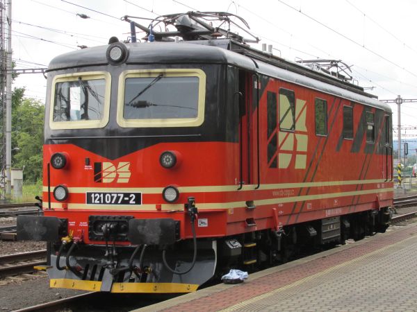 121 077 IDS Cargo Decin hl.n. 25.06.2015 Die 85 Maschinen der damaligen Baureihe CSD E 469.1 wurden bei Skoda in Pilsen im Jahr 1960 gebaut und bei der Staatsbahn bis 2006 ausgemustert. Einige Maschinen wurden für private Unternehmen aufgearbeitet. |