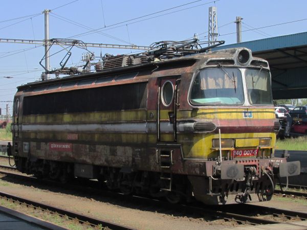 240 007 CD Cheb 02.07.2015 Die Firma Skoda in Pilsen fertigte 145 Maschinen der Baureihe S 499.0 in den Jahren 1968 bis 1970. Cheb gehörte damals zu den drei Stationierungszentren für diese Baureihe in Tschechien. Nach der Auflösung der Tschechoslowakei verblieben im Jahr 1993 nur noch wenige Exemplare bei den Tschechischen Bahnen. Um so erfreulicher für mich, dass doch noch eine Lok kurz vor meiner Abreise an mir vorbei rollte. |