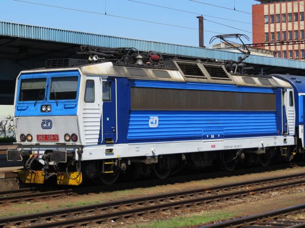 362 126 CD Cheb 02.07.2015 Die Baureihe 362 entstand aus der Baureihe 363 durch Umbauten und man erzielte eine Erhöhung der Höchstgeschwindigkeit auf 140 km/h. Einige der 362er wurden außerdem für den Einsatz mit Wendezügen ausgerüstet. |