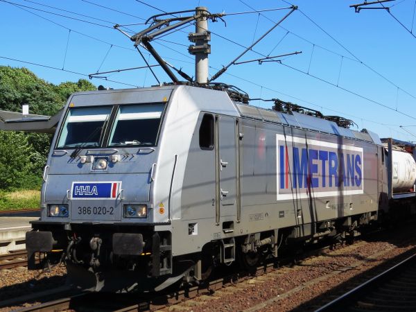 386 020 - 2 METRANS / HHLA Pirna 26.08.2016 Wir sehen hier die letzte von 20 Maschinen, die in den Jahren 2014 und 2015 an METRANS ausgeliefert worden sind. Sie entsprechen der Baureihe 186 in Deutschland. |