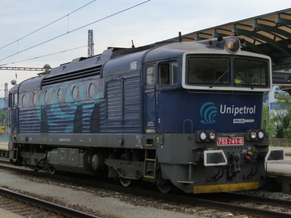753 741 Unipetrol Decin hl.n. 25.06.2015 Zwischen 1968 und 1977 entstanden 408 Maschinen der damaligen CSD-Baureihe T 478.3 bei CKD Praha. Warum sie den Spitznamen "Taucherbrille" tragen ist wohl kaum zu übersehen. |