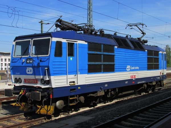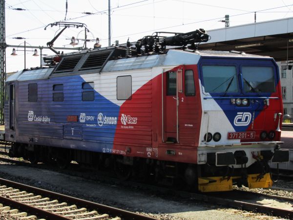 371 001 CD Dresden Hbf 29.04.2015 Die Baureihe 371 ist die 160 km/h - Variante der Baureihe 372, die nur für 120 km/h ausgelegt ist. Insgesamt waren 15 Lokomotiven an die CSD (jetzt CD) geliefert worden. Davon wurden sechs zur Baureihe 371 umgebaut. |