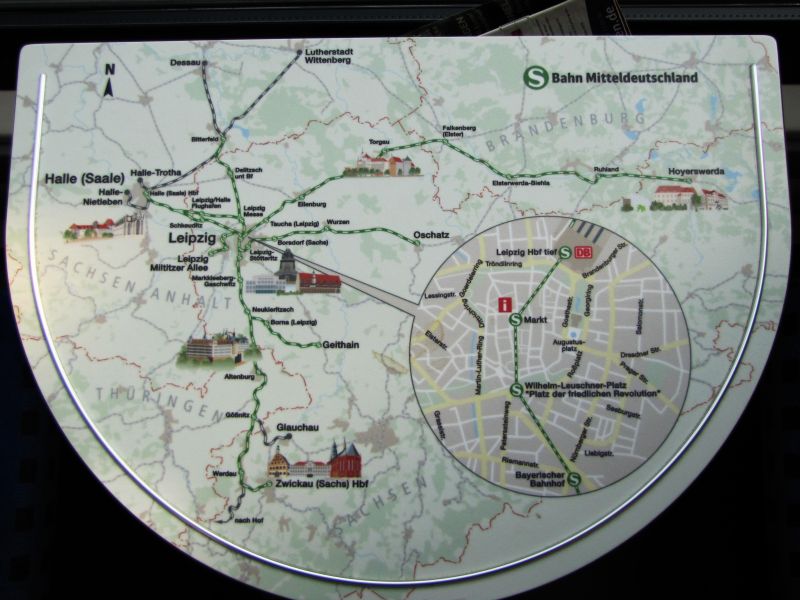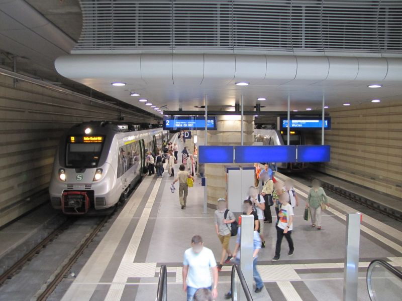 Aktuell steht mir kaum noch Zeit für meine Exkursionen auf Deutschlands Schienennetz zur Verfügung. Aber der City-Tunnel in Leipzig stand auf meiner Liste, seit ich die ersten Löcher in der Leipziger Innenstadt und das verschobene Portal des Bayerischen Bahnhofs fotografiert hatte. Jetzt ließ sich dieses "Fotoprojekt" mit nur minimalem Zeitverlust in eine Anreise nach Jena integrieren. Der Plan war, über Halle nicht direkt nach Jena durch zu fahren, sondern mit der S-Bahn nach Leipzig Bayerischer Bahn und sich von dort aus Station für Station zum Hauptbahnhof Leipzig zurückzubewegen. Abschließend dann mit nur geringem Verzug von Leipzig Hbf weiter nach Jena. Hat auch genau so geklappt.