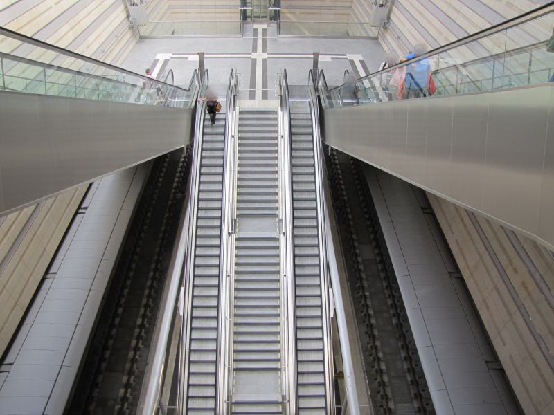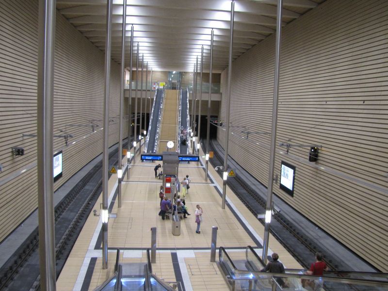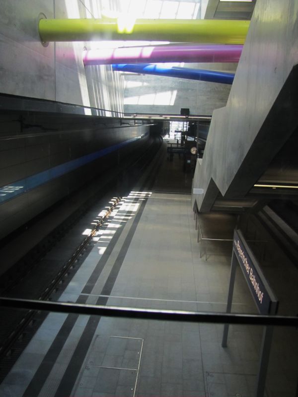 Der Weg zurück zum Tageslicht bietet am Hauptbahnhof verschiedene Möglichkeiten die Höhendifferenz zwischen "Normal Null" und Tunnel-Level wenigstens zu erahnen. So kann man einmal in halber Höhe versuchen, die Gesamthöhe einzufangen. |