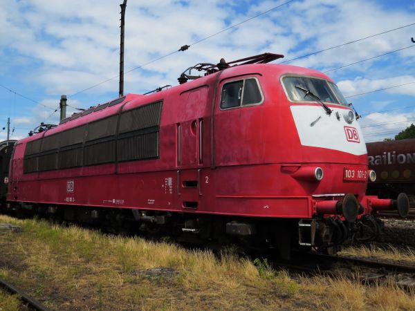 103 101 kurzer Führerstand Darmstadt-Kranichstein 15.07.2015 Zwischen 1991 und 1993 war diese Lok mit spezieller Lackierung als Lufthansa-Express unterwegs. Daran wird vielleicht in nicht allzu ferner Zukunft die geplante Neulackierung wieder erinnern. |