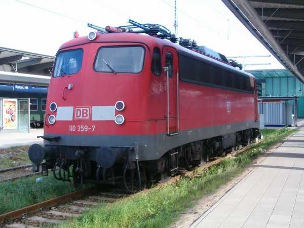 110 359 Rostock Hbf 08.09.2006 Anfang September 2006 stand diese Lok über mehrere Tage im Rostocker Hbf herum. |