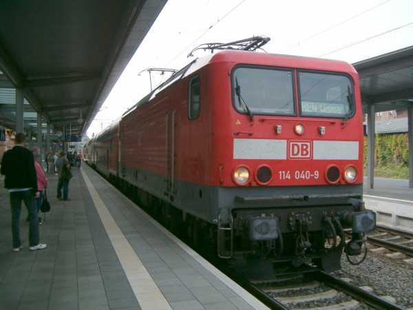 114 040 Schwerin Hbf 06.09.2006 Hier kommt mein RE, der mich in einer knappen halben Stunde von Schwerin nach Wismar bringen wird. |