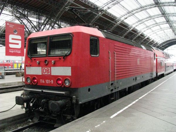 114 101 ex 143 171 Leipzig Hbf 28.06.2008 Die 160 km/h - Version ist auf Grund ihrer Kosten ein Einzelgänger geblieben. Es ist von etwa 300.000 Euro die Rede, die die Umrüstung (Juni 2006) gekostet haben soll. |
