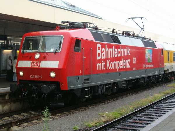 120 501 ex 120 153 Mannheim Hbf 18.05.2006 Die Lok von DB Systemtechnik hat an diesem Tag in Mannheim zu tun. Im Herbst 2007 habe ich sie noch einmal in Leipzig getroffen. |
