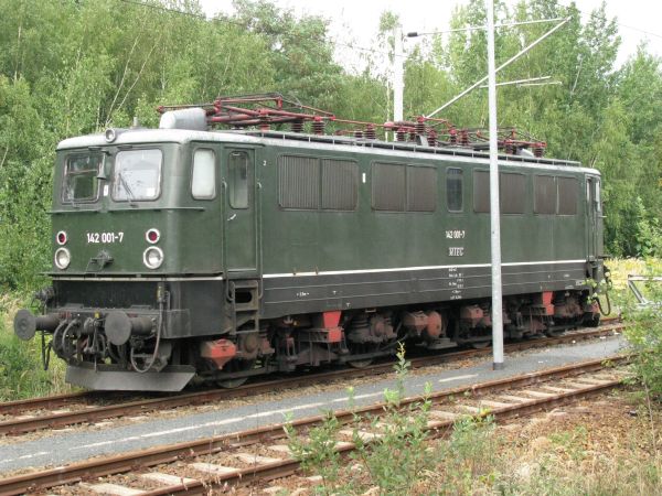 MTEG 142 001 ex 242 001 ex E42 001 Pirna 03.09.2008 1963 wurde sie von LEW an das Bw Karl-Marx-Stadt Hilbersdorf ausgeliefert. In Reichenbach erfolgte ihre Ausmusterung am 08.10.1993. Heute ist die der IG 58 3047 gehörende Maschine bei der Muldental-Eisenbahnverkehrsgesellschaft mbH eingestellt. |