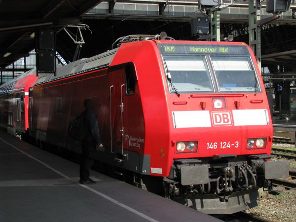 146 124 Bremen Hbf 23.05.2008 Die Maschine fährt zwar einen RE nach Hannover, allerdings in Hannover ist mir die 146.1 bis jetzt noch nie aufgefallen. Macht nichts, dafür habe ich sie ja nun in Bremen "erwischt". |