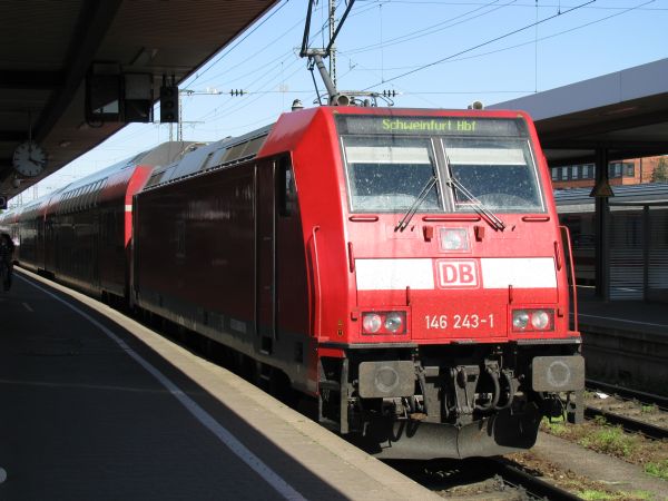 146 243 Nürnberg Hbf 10.05.2008 Aus dem Verkehrsmuseum kommend brachte mich diese Lok in der ersten Etappe von Nürnberg nach Bamberg. |