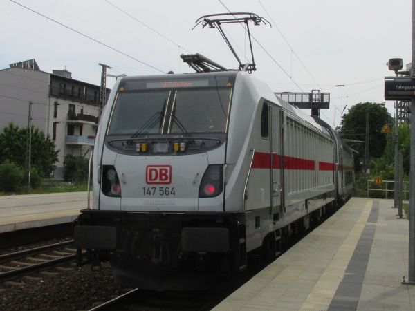 147 564 Jena Saalbahnhof 09.06.2019 Es war eine zügige aber keine fahrplanmäßige sondern eine "Nicht einsteigen"-Durchfahrt. |