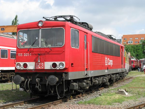155 001 Vorserienlok DB-Museum Halle / Saale 05.07.2008 Die drei Vorserienloks wurden 1974 an Halle P ausgeliefert. Die 001 wurde am 12.06.2006 in Seddin ausgemustert. Jetzt findet man sie wieder in Halle P, wie hier zum fünften Jahrestag der Gründung des Museums. |