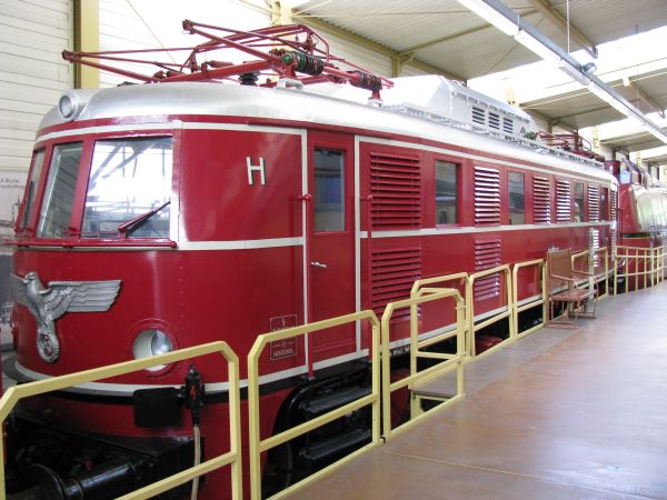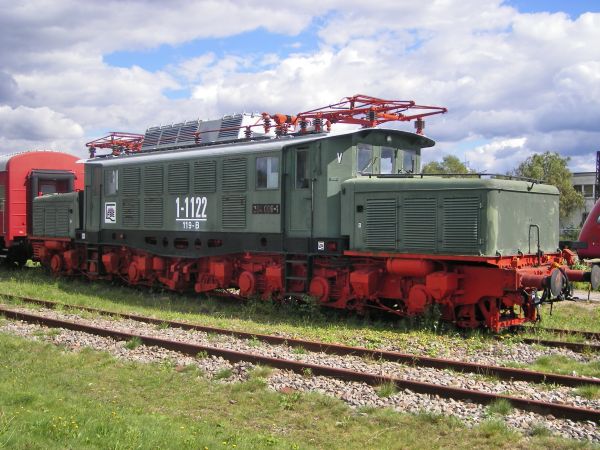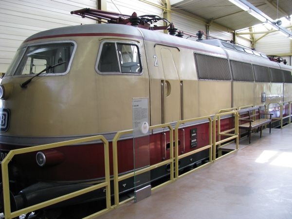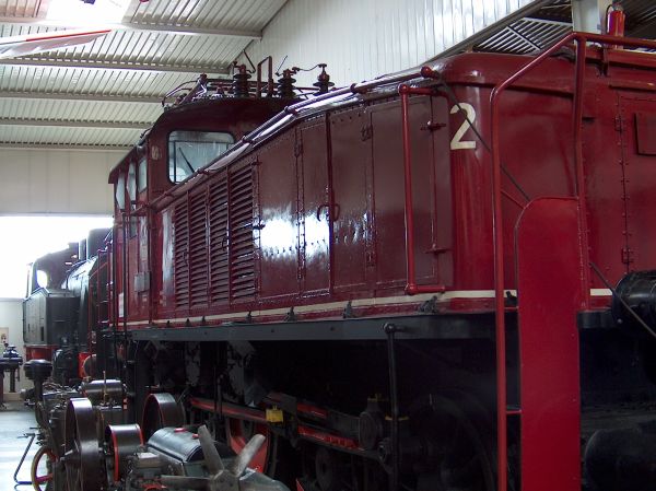 E 95 02 DB-Museum Halle / Saale 03.07.2010 Dieser Gigant wurde 1927 von der AEG gebaut, gelangte nach dem 2. Weltkrieg in die UdSSR und von dort 1952 zurück zur DR, wo sie am 28.05.1969 ausgemustert wurde. Bis 1977 diente sie in Halle zur Weichenheizung, bevor sie 1978 als DR-Traditionslok zum Verkehrsmuseum Dresden kam. |