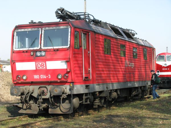 180 014 ex 230 014 Weimar 11.10.2008 Eine der 20 von Skoda für die Deutsche Reichsbahn gebauten Zweisystemloks für den grenzüberschreitenden Verkehr zwischen DDR und CSSR. Ende 2014 gab es keine Maschine dieser Baureihe mehr im Dienst der DB AG. |