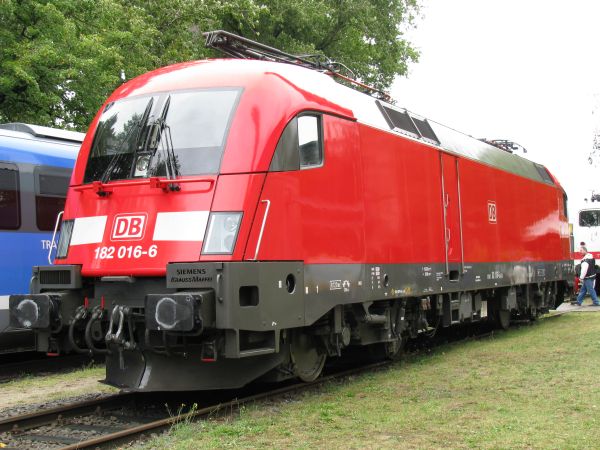 182 016 Bw Wittenberg 24.08.2008 Dieser überaus blank geputzte Taurus war Teil der "Bahnaktionstage" im Bahnbetriebswerk Lutherstadt Wittenberg. Im Jahr 2001 wurde er in Nürnberg Rbf in Betrieb genommen. |