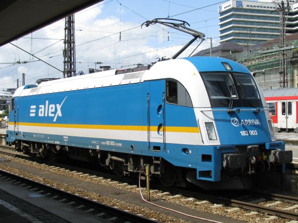183 003 München Hbf 25.07.2009 Nach dem eine Rangierlok die Wagen auf Gleis 26 bereitgestellt hat, setzt sich nun auch 183 003 vor den Zug. Um 14:44 Uhr geht es dann als ALX37980 in Richtung Hof. Alle 5 Maschinen dieser Baureihe und die 183 500 der mgw sind mir bis 2014 vor die Kamera gefahren. |