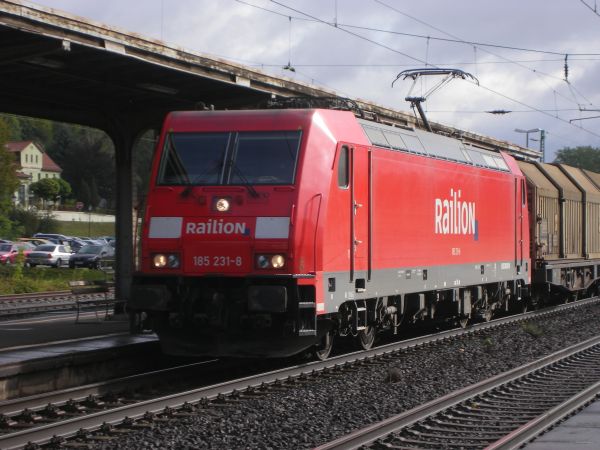 185 231 Großheringen 11.09.2007 Beim Umsteigen in Richtung Halle ergab sich die "Begegnung" mit dieser im Jahr 2005 nach Mannheim ausgelieferten DB-roten 185er. Von dieser Baureihe (inkl. 185.5) hat es bisher etwa die Hälfte der gefertigten 648 Maschinen in meine Sammlung geschafft. |