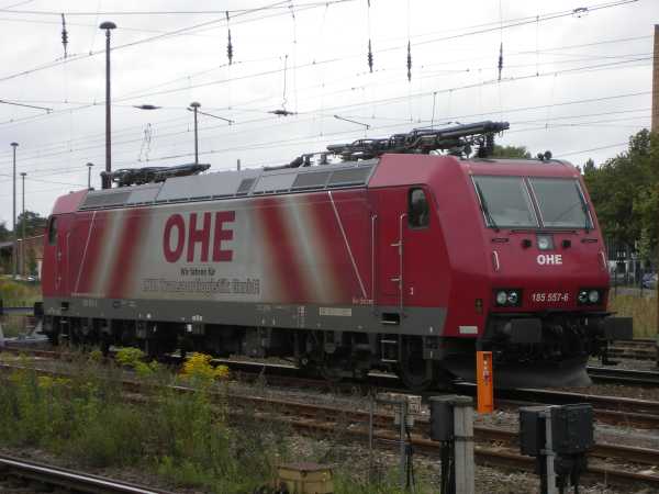 185 557 Stendal 07.09.2007 Meine gut 270 Aufnahmen mit Loks der Baureihe 185 teilen sich nahezu gerecht zwischen DB- und Privat-Varianten auf, aber diese Lok in OHE-Lackierung gefällt mir am besten. |