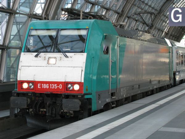 186 135 Berlin Hbf 01.09.2009 Ich war doch nur mal neugierig auf den Berlin-Warzawa-Express und dann so etwas. Wenige Jahre später gab es dann überwiegend die polnische Baureihe 370 auf dieser Strecke. |