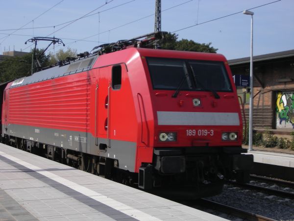 189 019 Jena Saalbahnhof 16.09.2006 Im Jahr 2003 ging diese Lok für die DB AG auf die Schiene. Für diese Aufnahme musste ich nicht weit reisen, aber auch in Dresden, Hamburg, Uelzen, Fulda und München sind mir Loks dieser Baureihe immer wieder begegnet, bis jetzt etwa die Hälfte der hergestellten Baureihe. |