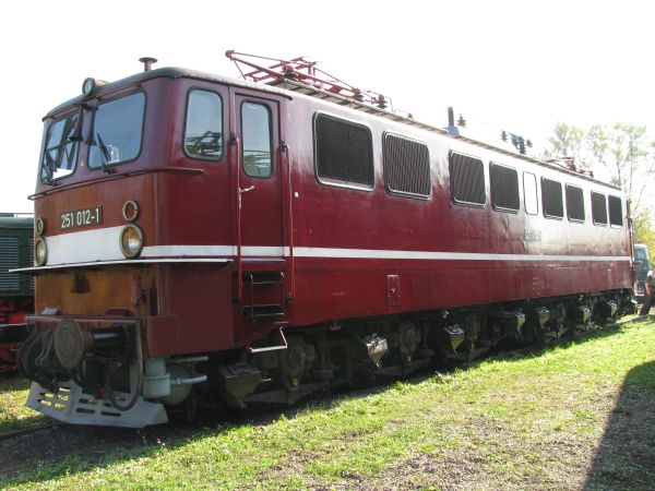 171 012 ex 251 012 Weimar 11.10.2008 1965 wurde sie bei LEW gebaut und war auf der Rübelandbahn im Einsatz. Im Jahr 2002 ging sie an den Thüringer Eisenbahnverein. |