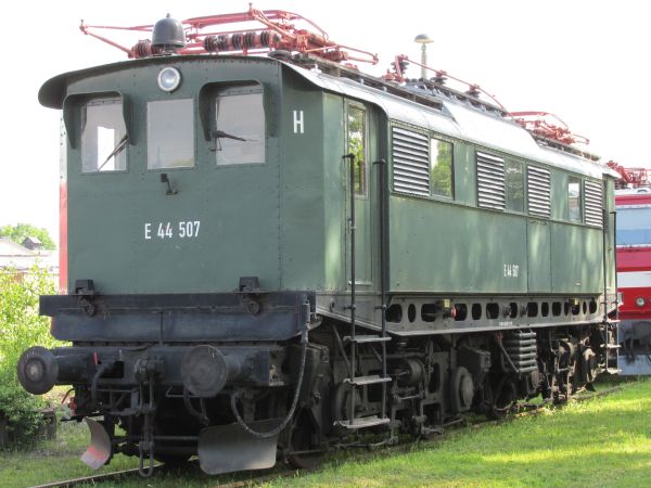 E 44 507 Bw Weimar 24.05.2014 Hier sehen wir eine von neun in den Jahren 1932 bis 1934 in Freilassing für die steigungsreichen Strecken nach Berchtesgaden in Betrieb genommenen Lokomotiven. Dieses Exemplar war dort bis zum 25.09.1983 im Einsatz. Danach wurde sie Teilespender im AW Nürnberg. |