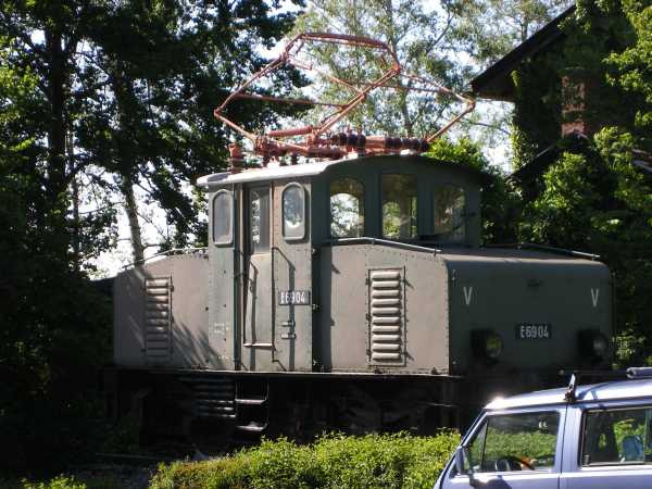 E 69 04 Murnau 12.05.2007 Von dieser Baureihe existierten 5 Maschinen, die alle die Strecke zwischen Murnau und Oberammergau als Haupteinsatzgebiet hatten. Die 1932 hergestellte E 69 04 wurde im September 1977 außer Betrieb genommen und steht jetzt als Denkmal auf dem Bahnhofsvorplatz von Murnau. |