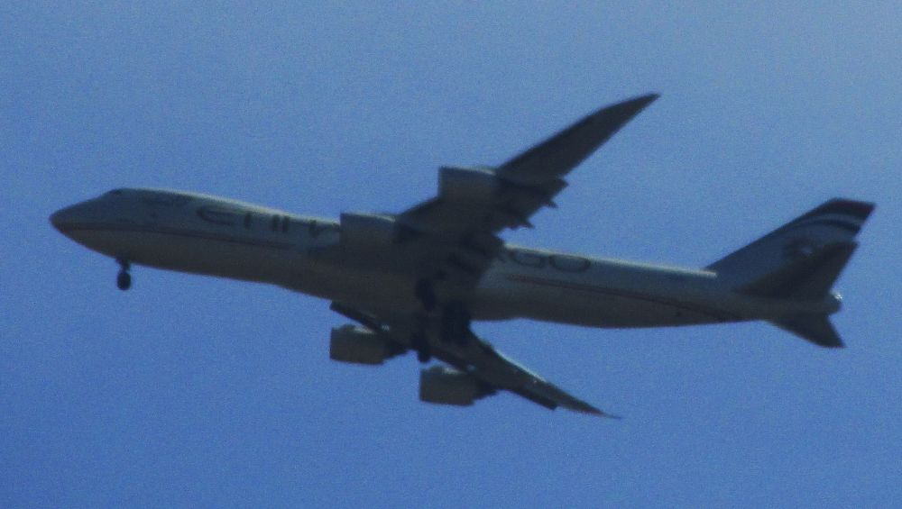 Frachtflugzeuge sind in aller Regel in der heutigen Zeit überdurchschnittlich große Maschinen und damit auch aus großer Entfernung ziemlich gut zu dokumentieren. Mein Rekordhalter von der Größe her kann derzeit nicht überboten werden, es ist die mehrfach in Leipzig/Halle fotografierte Antonow An-225 Mrija. Trotz ihrer enormen Größe überrascht mich diese Maschine und ihre kleineren Schwestern von Typ Antonow An-124 immer noch mit ihren erstaunlich kurzen Start- und Landestrecken. Übrigens ist mir die im Herbst 2012 damals noch sehr neue Boeing 747-8 beim Erstkontakt nicht auf einem Flughafen vor die Linse gekommen sondern bei einem Spaziergang am Rheinufer in Köln. Das Licht war gut, aber die Entfernung ganz schön groß.