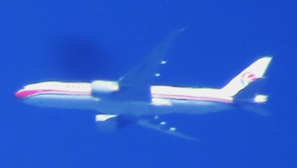 B-2082 China Cargo Airlines Jena 2018 Die Maschine war auf dem Weg von Shanghai nach Frankfurt/Main in 28625 Fuß (8725 Meter) Höhe etwas nördlich von Jena zu sehen. |