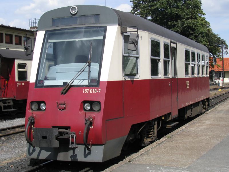 187 018 23.08.2009 Wernigerode Auch er gehört zu der 4 Fahrzeuge umfassenden kleinen Serie, die 1999 in Halberstadt gefertigt wurde. Im März 2015 hat er bei meiner kleinen Tour auf der Harzquerbahn für den Transport auf der vorletzten Etappe von Eisfelder Talmühle nach Ilfeld gesorgt. Den restlichen Weg nach Nordhausen übernahm dann der Combino Duo 201. |