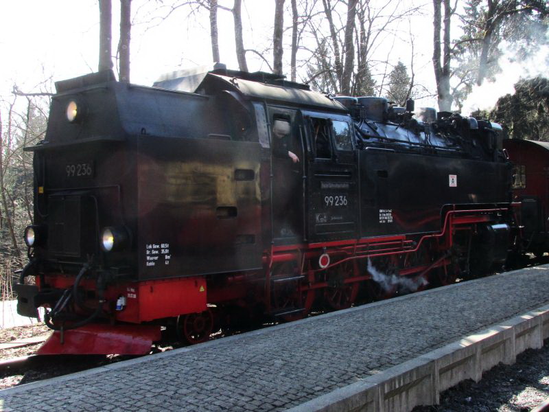 99 236 18.03.2015 Drei Annen Hohne Die Lok 99 7236 ist derzeit als 99 236 mit ursprünglicher Betriebsnummer unterwegs. (siehe auch bei 99 7236) Die Lok gehört zu den nach 2004 rekonstruierten Maschinen. |